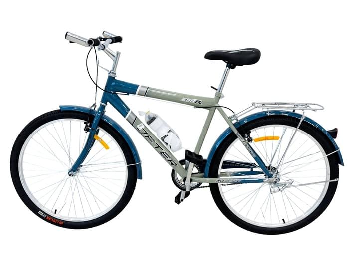 VLRA MTB-26 Urban Commuter Bicycle, Blue and Silver, with Rear Cargo Rack, Comfort Saddle