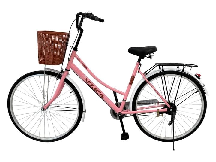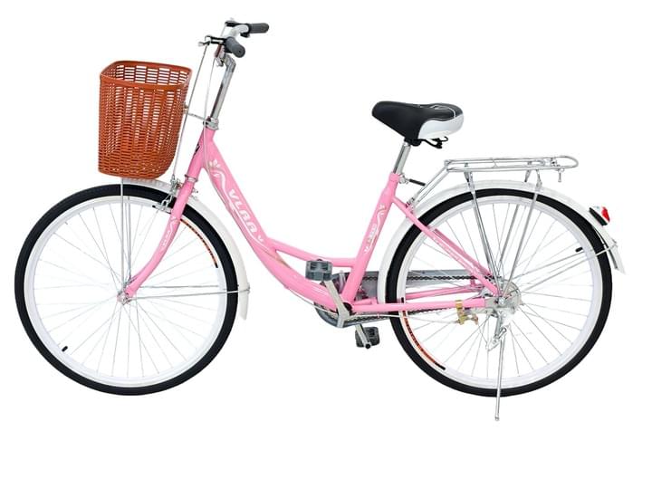 VLRA Classic City Bicycle, Pink, 24 Inch Wheels, with Front Basket and Rear Rack, Comfort Cruiser Style