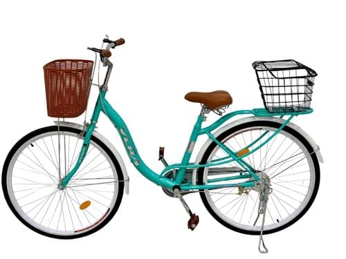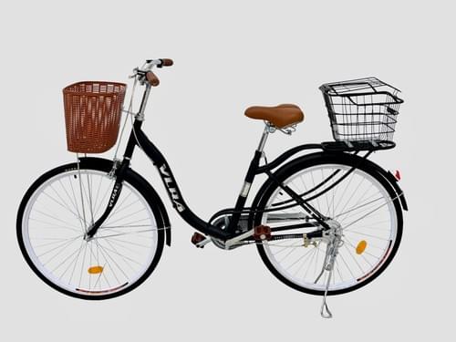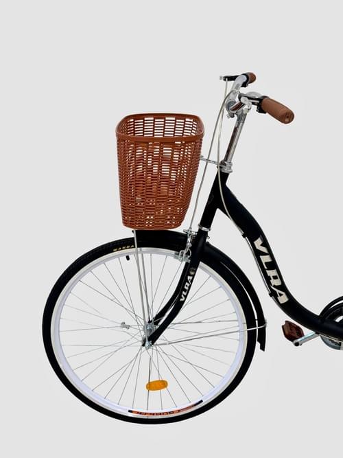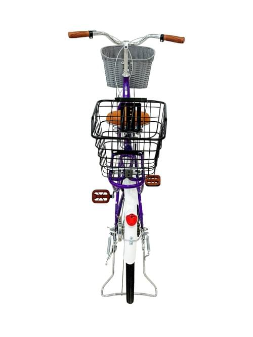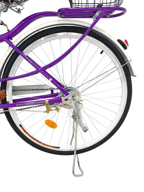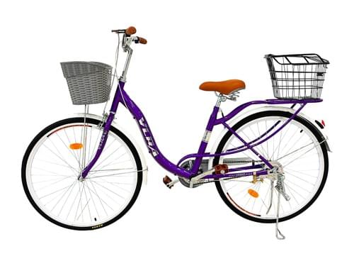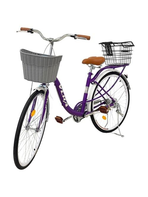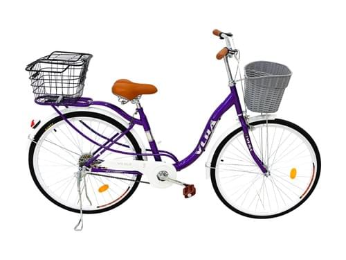 VLRA Urban City Bicycle, Purple, Steel Frame with Brown Leather Seat, Dual Storage Baskets, Classic Step-Through Design, 26-Inch Wheels