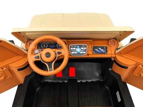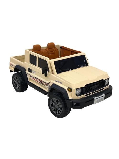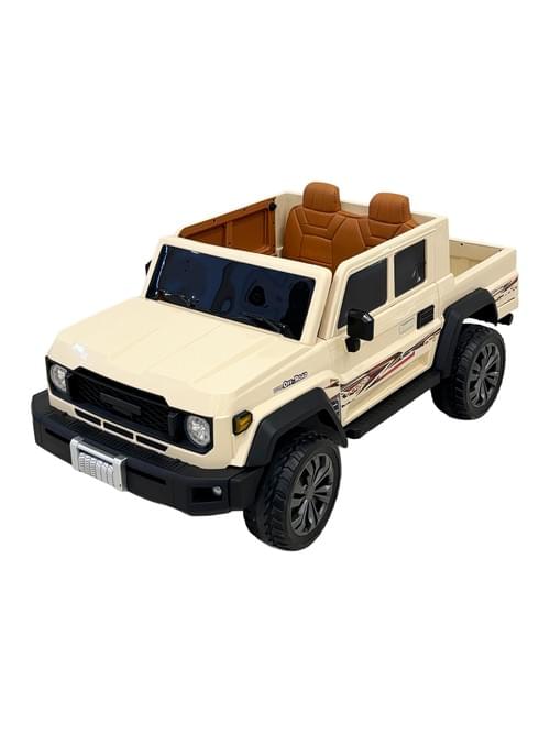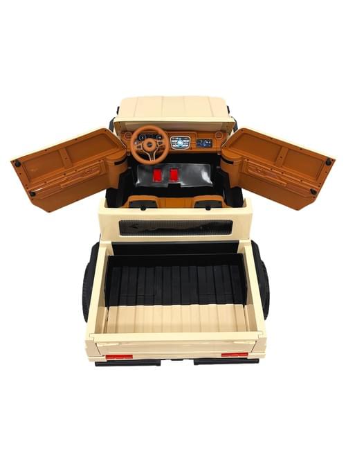Kids Electric Ride-On Pickup Truck, Beige, 2-Seater, Opening Doors, Cargo Bed, Brown Interior, Battery Powered 3-7 years