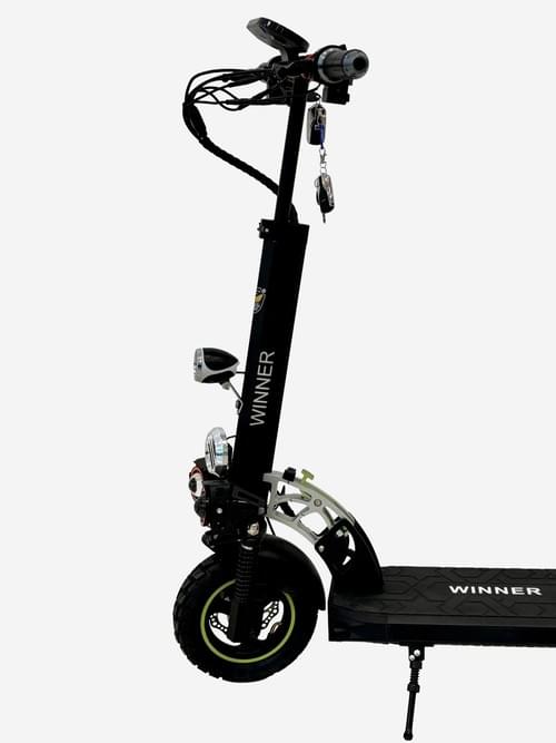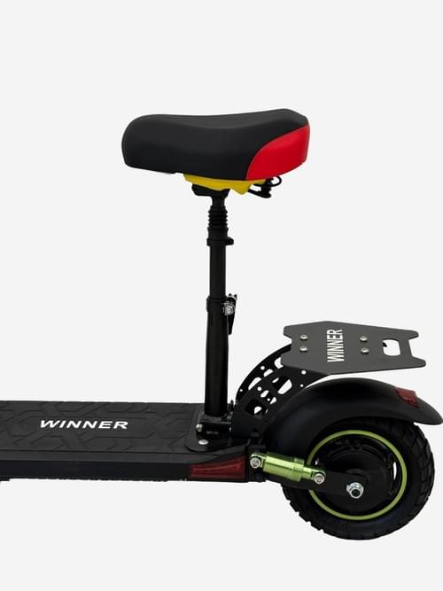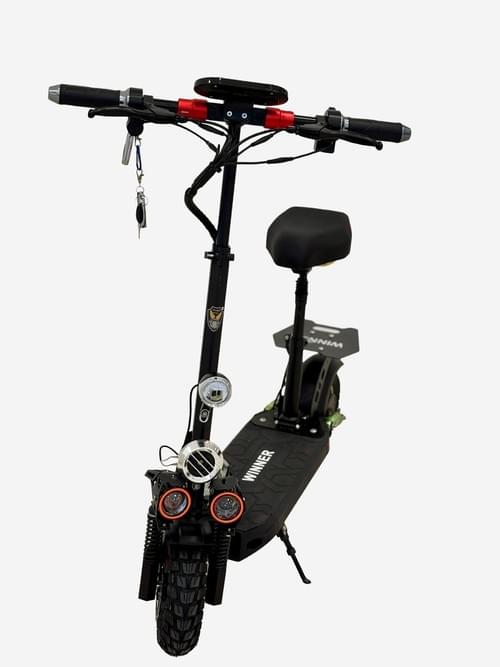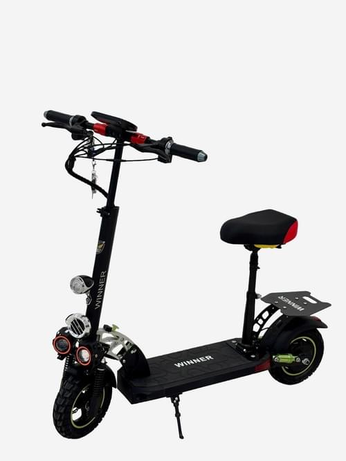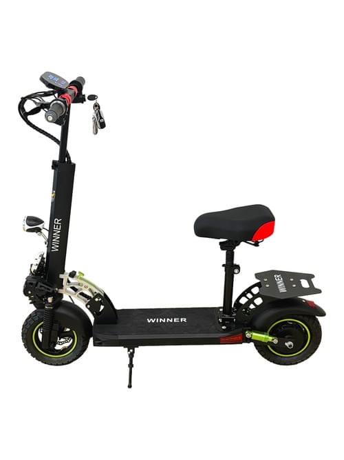 Winner 48V12AH Electric Scooter, Black, Dual Disc Brake System with Suspension, Foldable Design, LED Display, Adjustable Seat, Off-Road Tires with Green Accents