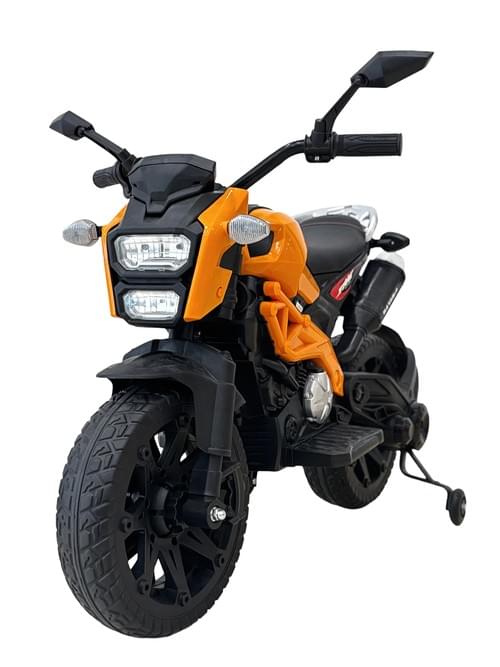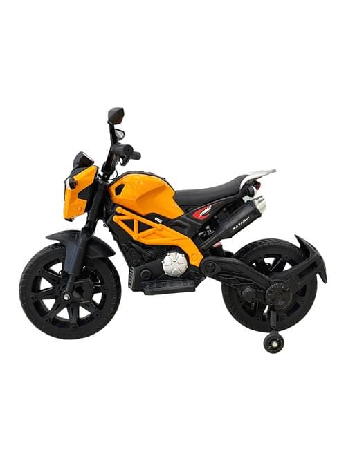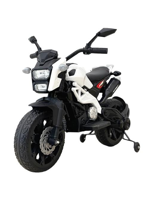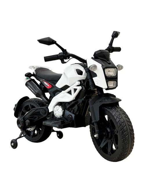 Electric Ride-On Motorcycle for Kids, White and Black, Battery Powered, Training Wheels, Headlights 3-5years