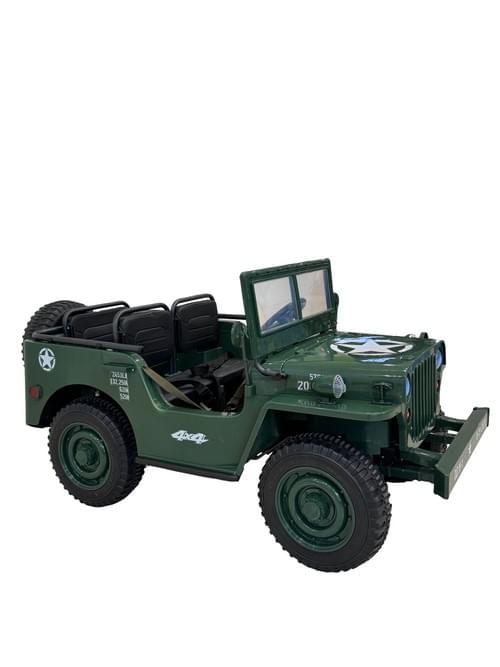 Children's electric off-road vehicle, four-wheel drive, double doors, three seats, military green