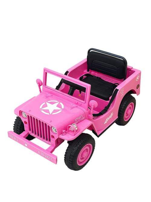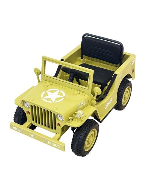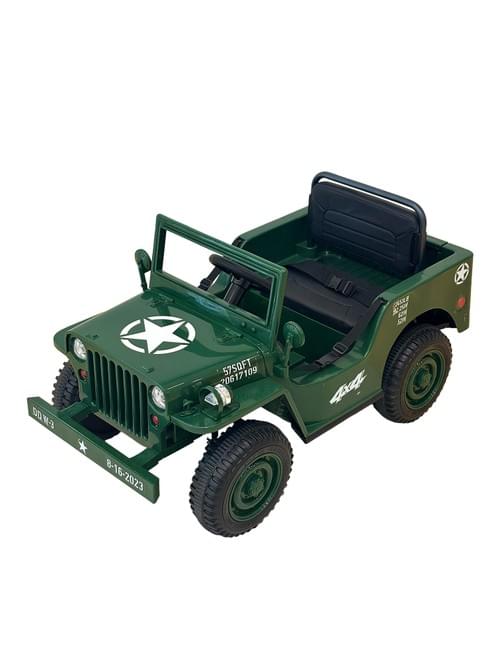 Kids Electric Ride-On Military , Green, 4x4 Style, Star Emblem, Opening Doors, Black Seat,