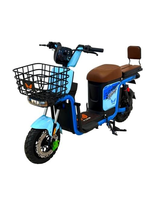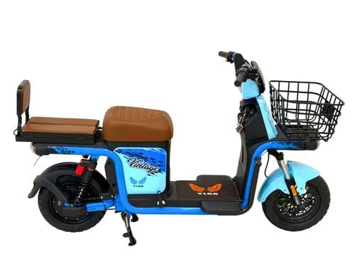 VLRA Electric Mobility ,ScooterTurquoise and Black, with Front Basket, Brown Leather Seat, LED Headlight, Modern Urban Commuter Design 60V20AH