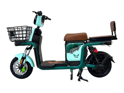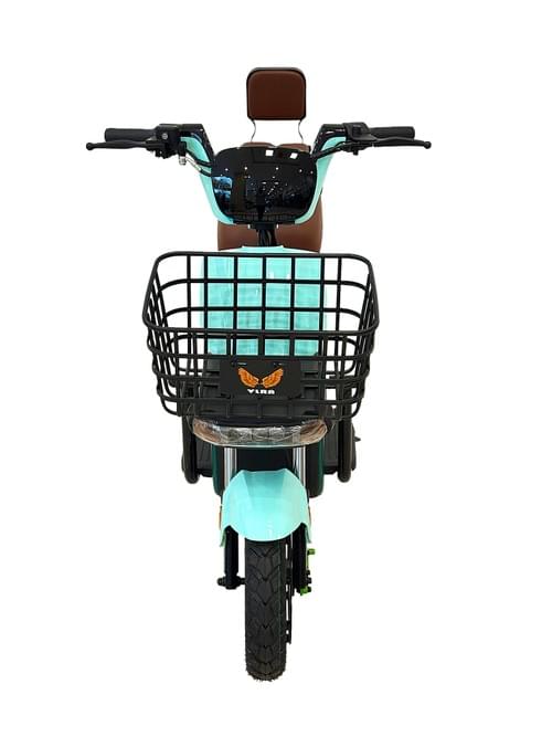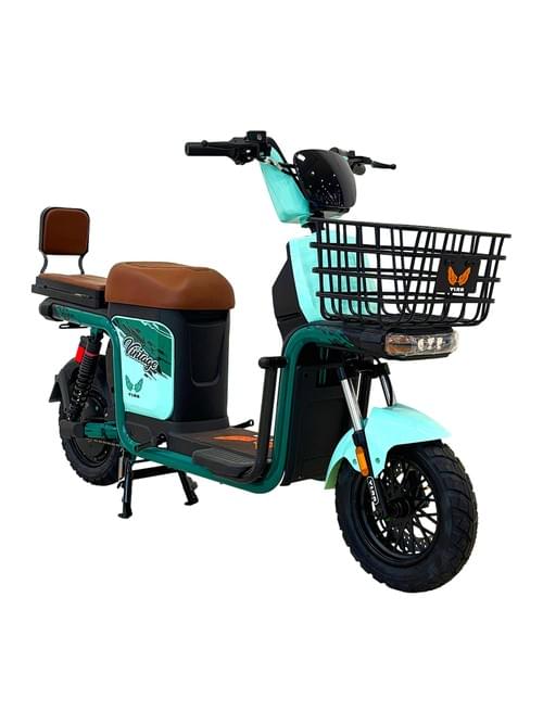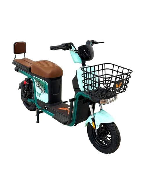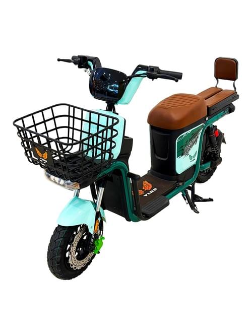 VLRA Electric Mobility ,ScooterTurquoise and Black, with Front Basket, Brown Leather Seat, LED Headlight, Modern Urban Commuter Design 60V20AH