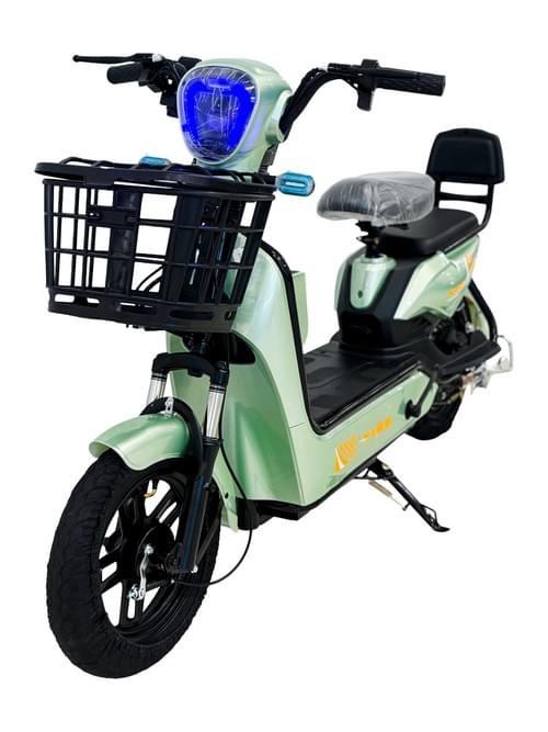 VLRA Super Bike Electric Scooter, Blue, with Front Storage Basket, LED Headlight, Dual Seat, Shock Absorption System 48V12AH