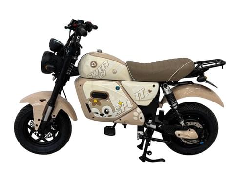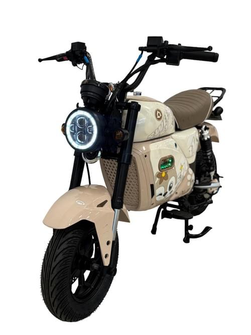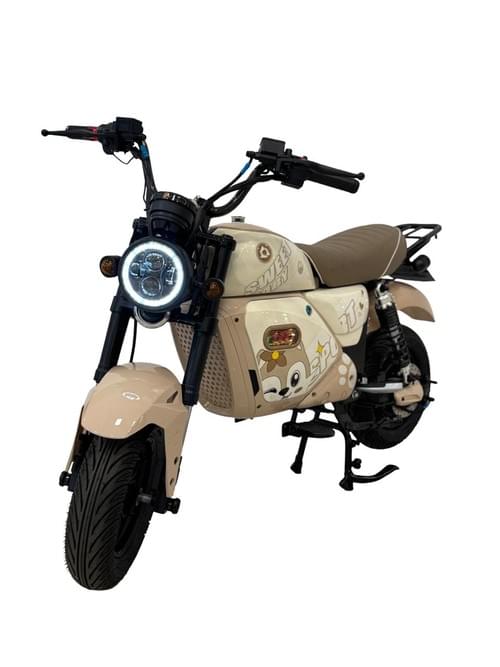 Electric Motorcycle, Beige and Black, Cute Cartoon Design, with Rear Rack,60V20AH