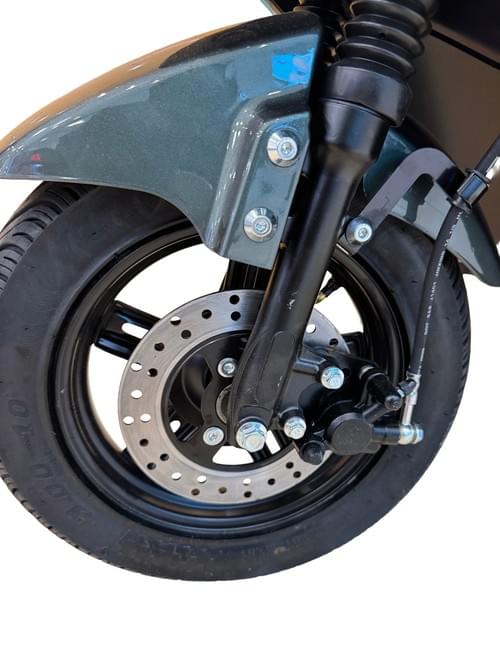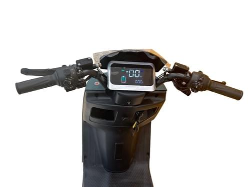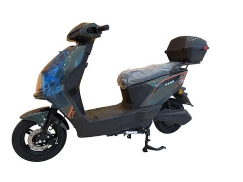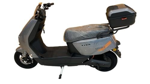VLRA electric mobility scooter features a 60V 20AH lead-acid battery, a rear storage compartment, two seats, dual disc brakes, LED headlights, and turn signals.