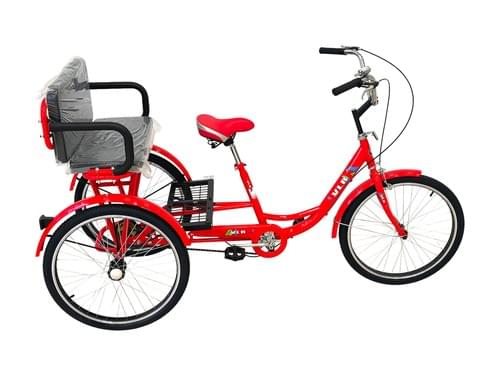 VLRA 24 inch Adult Tricycle, Red, Steel Frame, Adjustable Padded Seat, Chrome Handlebars, Single Speed, Comfort Cruiser Style, for Recreation and Transportation