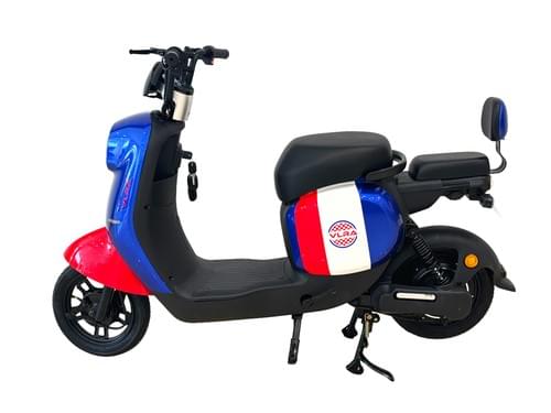 VLRA 48V20AH classic retro Mobility Scooters, white and red, brown leather seats, LED lights, modern urban transportation 60 speed