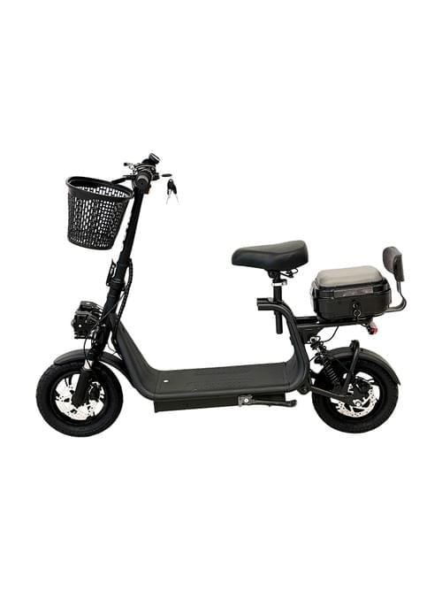 WINNER Electric Scooter, Black, with Front Basket, Rear Storage Box, Digital Display, Disc Brakes, Adjustable Seat, Suspension System 48V