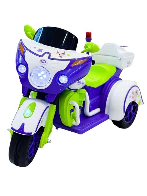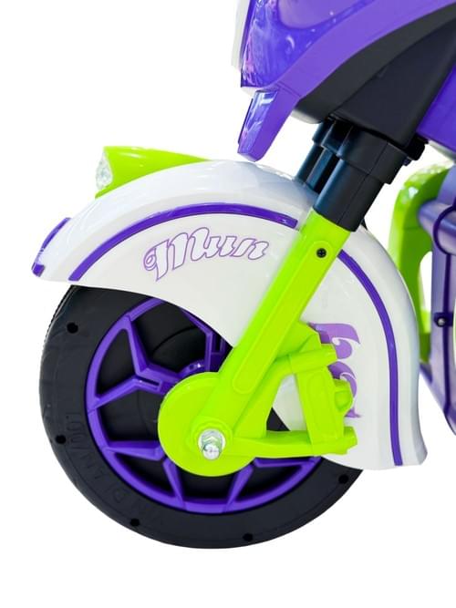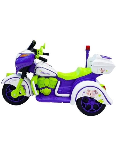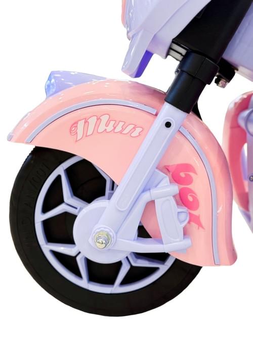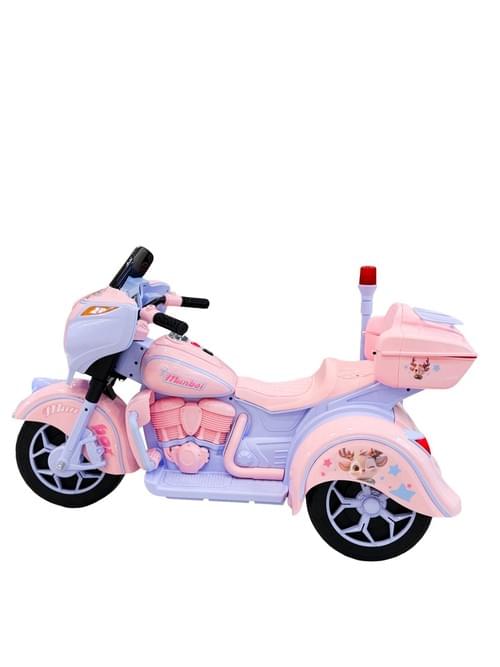 Kids Electric Ride-On Motorcycle Toy, Pink and Purple, 3-Wheel Design with LED Lights, Storage Compartment, Deer Decoration, Battery Powered