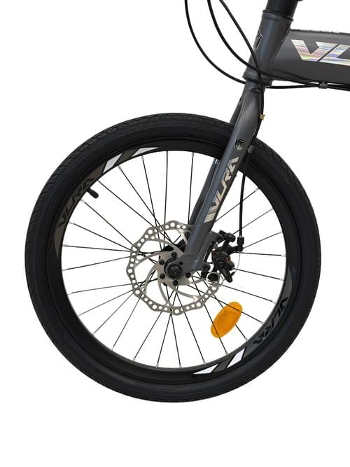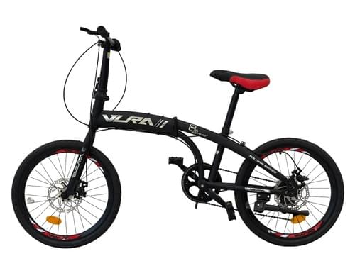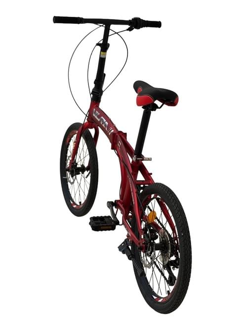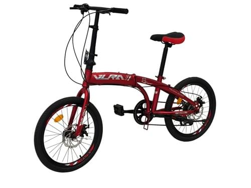 Vlra Folding Mountain Bike, Red, Disc Brake System, Adjustable Seat, Portable Design, Outdoor Recreation