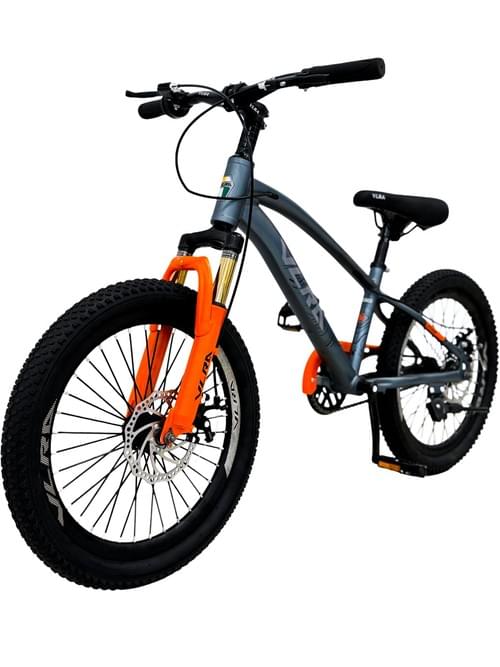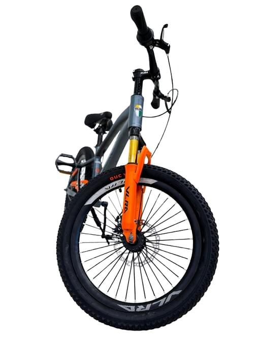 VLRA 20 inch Mountain Bike, Gray and Orange, Disc Brake System, Knobby Tires, Shock Absorbing Front Fork, Off-Road Performance