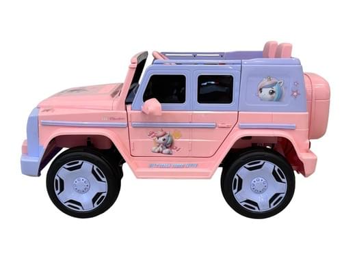 VLRA Electric 4WD Kids Car, Pink, with LED Lights, Cool Racing Design, Two Seats with Roll Brake