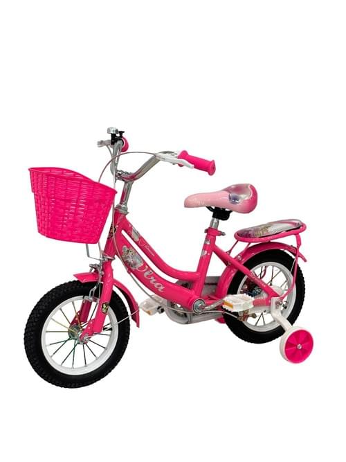 VLRA Kids' Pink Bicycle with Training Wheels, 12-Inch, Front Basket, Adjustable Seat, Girls' Beginner Bike