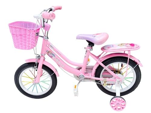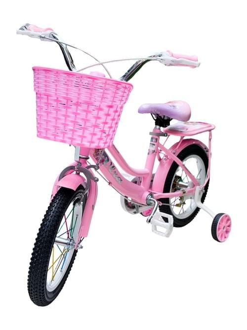 VLRA Kids Bicycle, Pink, 14-Inch, with Training Wheels, Front Basket, Girls 3-5 years