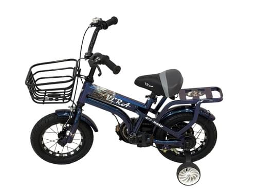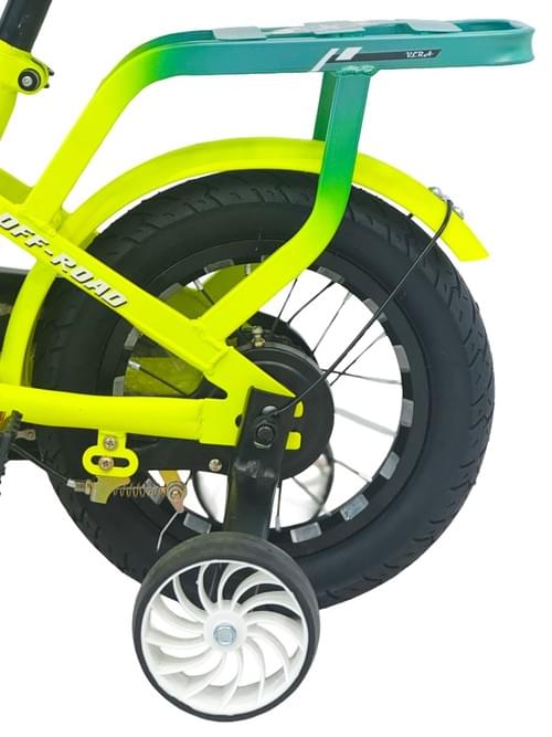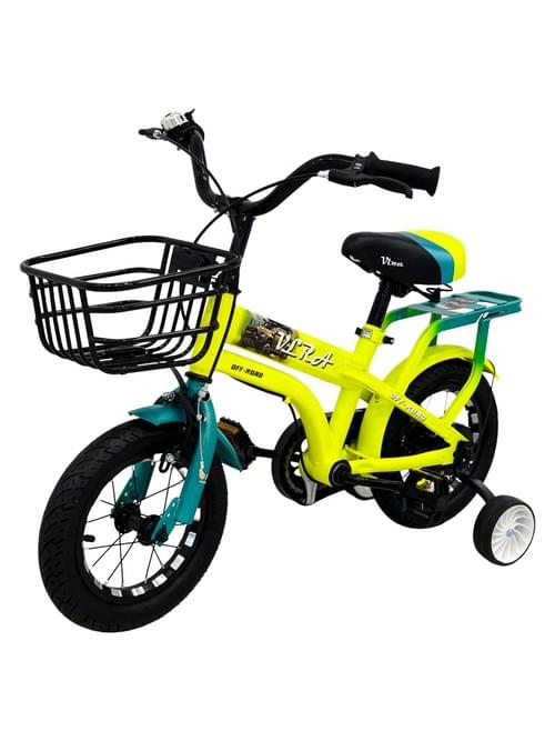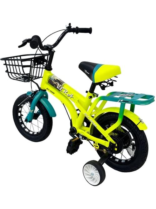 VLRA Kids Bicycle, Neon Yellow and Teal, 12-Inch Training Wheels, Steel Frame, Front Basket, Adjustable Seat 3-5 years