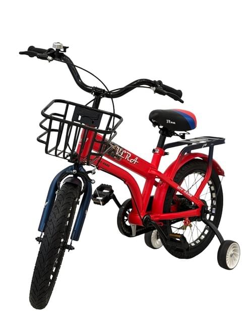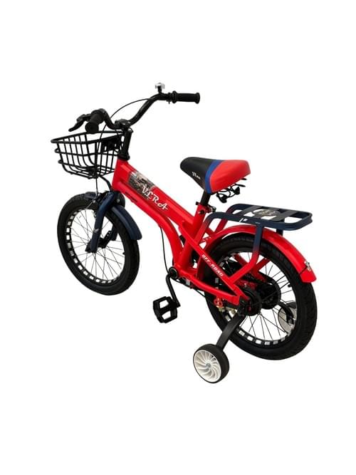 VLRA BIKE Kids Bike with Training Wheels, 16-Inch, Black and Red, Front Basket, Adjustable Handlebar and Seat
