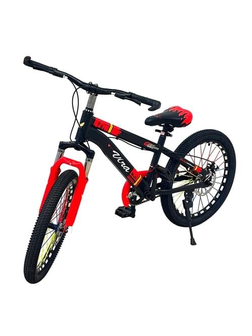VLRA 20 incj Kids Mountain Bike, Black and Red, Disc Brake System, Knobby Tires, Shock Absorber Fork, Sporty Design,7-11 years