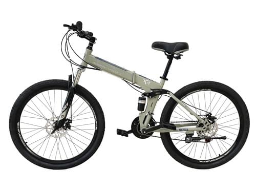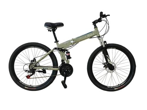 Folding Mountain Bike, Khaki Green, 26-Inch Wheels, Disc Brakes, Multi-Speed Gears, Suspension Frame 24 speed
